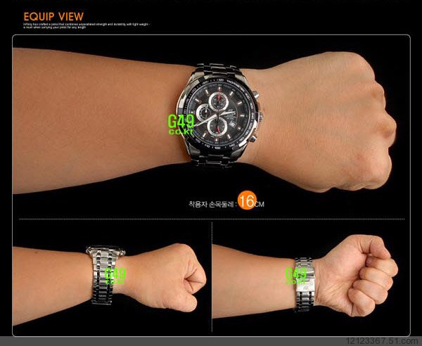 產品簡介:賽車風格的EDIFICE系列錶款,推出超人氣大尺寸錶款,創新錶框設計由離子IP處理的不銹鋼結合鋁素材打造而成。內圈三眼設計排列於錶盤左側,層層交錯的三圈設計與印刷放射紋路的錶盤,堆疊出錶面的立體感。搭載計時碼錶,最高可計時到11小時59分59秒,貼心設計的獨立日期顯示窗
