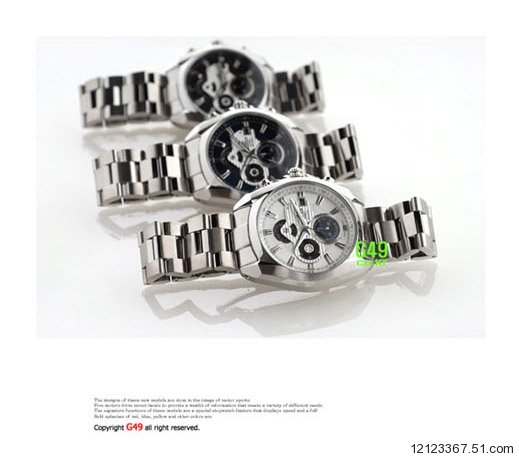 三圈設計:秒錶秒針、24小時、秒錶分針 日期顯示