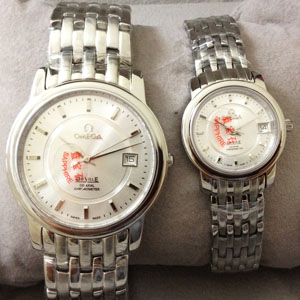 歐米茄情侶手錶白盤鋼帶OMEGA29341