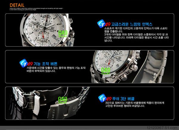 使用高度普遍的測時器樣式撥號盤。與美妙地發光澤的金屬盒和金屬帶結合, 新EF-524SP 和EF-524D 手錶是釋放純凈的質量氣氛壹個被提煉具體化的設計。根據"速度& 智力題材