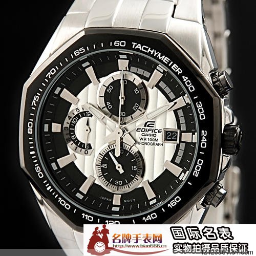 日期顯示,時針、分針、馬錶秒針,精確度為每月±20秒,強化不銹鋼,八角形錶盤,日本機芯。
