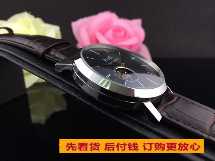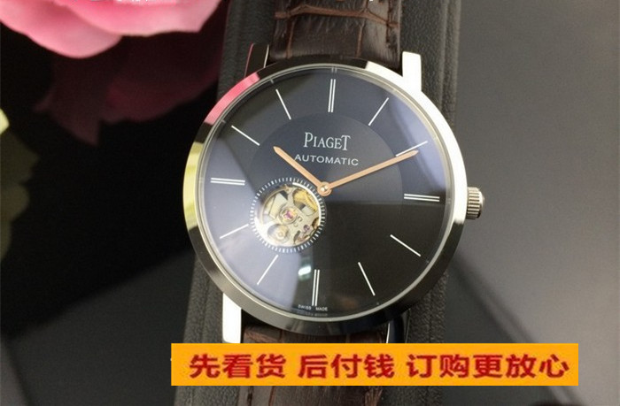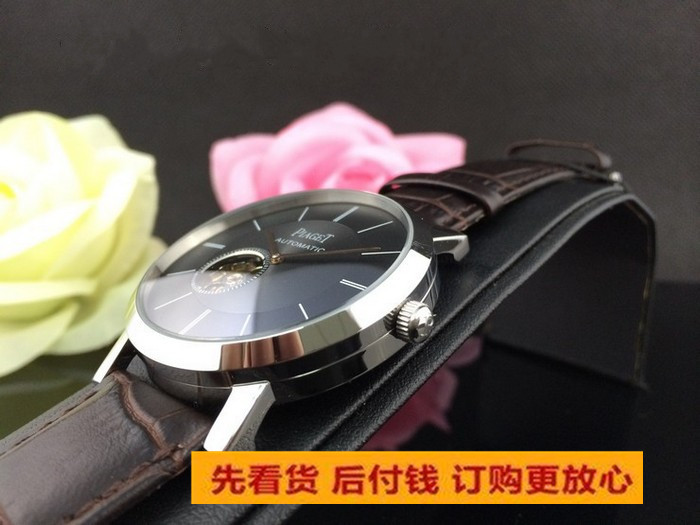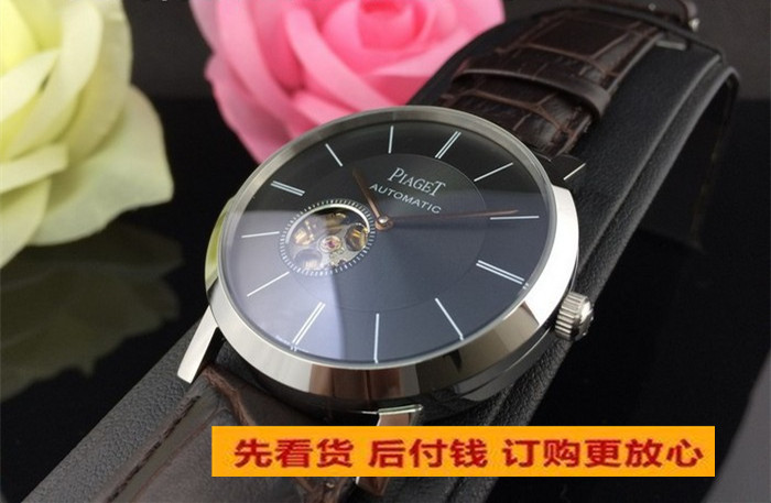 伯爵陀飛輪黑面真皮錶帶男機械腕錶