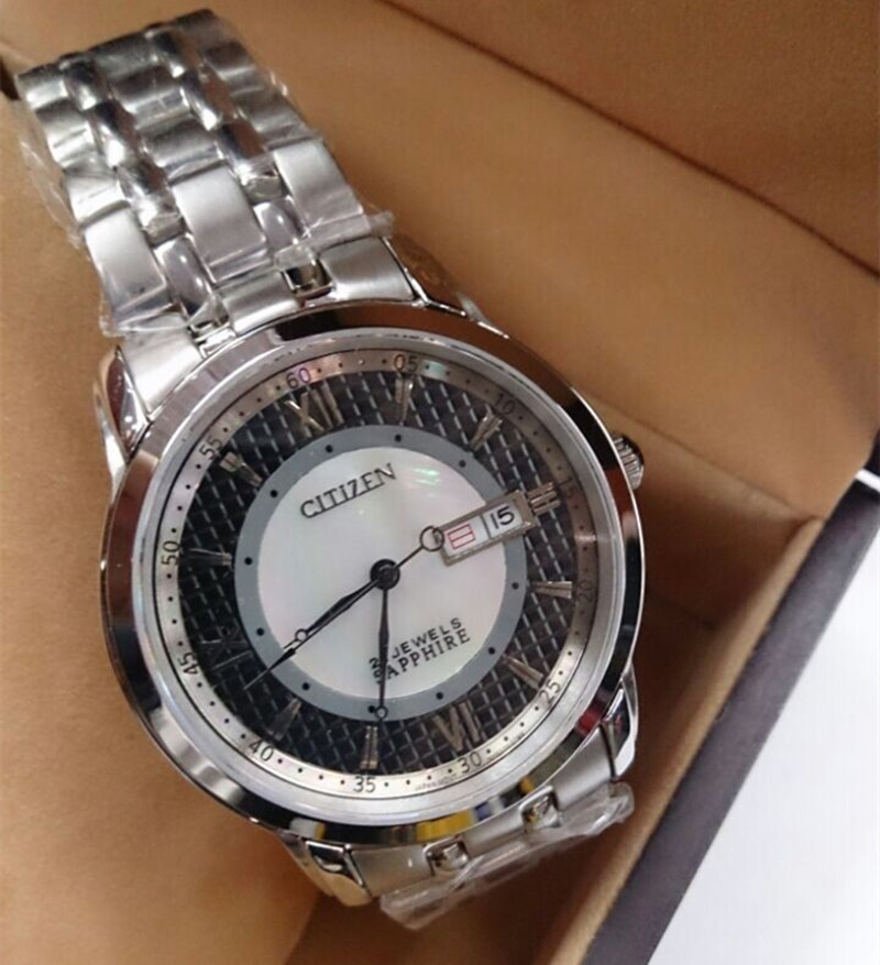 西鐵城 citizen 精鋼散珠錶帶 雙曆 自動機械錶 男士手錶 羅馬刻度