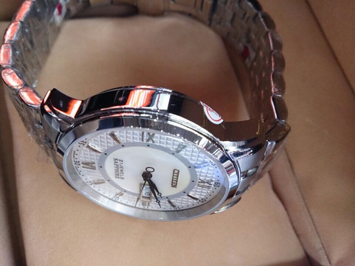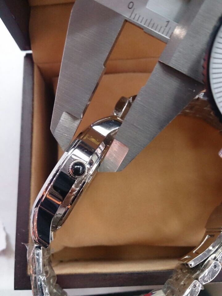 材質:高硬度耐磨藍寶石鏡面,全鋼錶殼,全鋼錶帶,羅馬刻度白色錶盤功能:3針計時,雙日歷窗口顯示尺寸:錶殼40mm ,周長235mm ,厚度11mm ,錶帶寬度17-20mm,重約159g標誌:錶面、錶背、錶扣處有品牌logo標誌防水:50米(50米以上即:50米左右到300米防水)保修:機芯壹年保修,機芯以外的其他手錶配件不在保修範圍,此為手錶行業保修慣例,如有其他延期保修服務,請聯系店主咨詢。