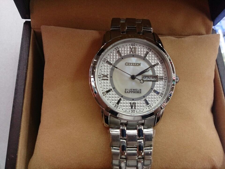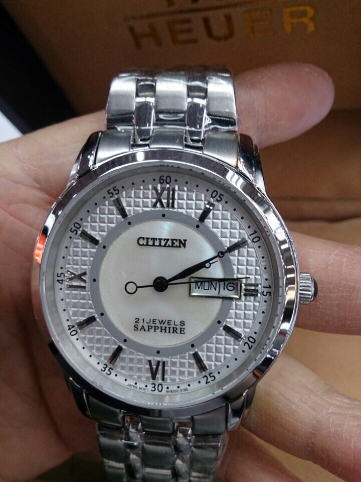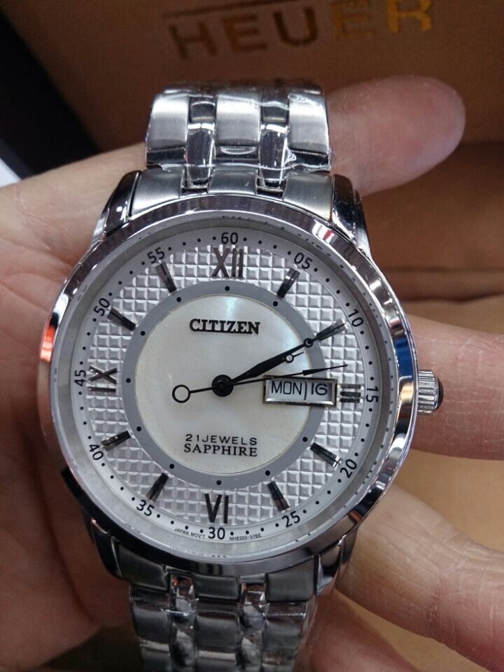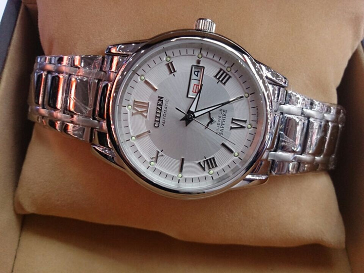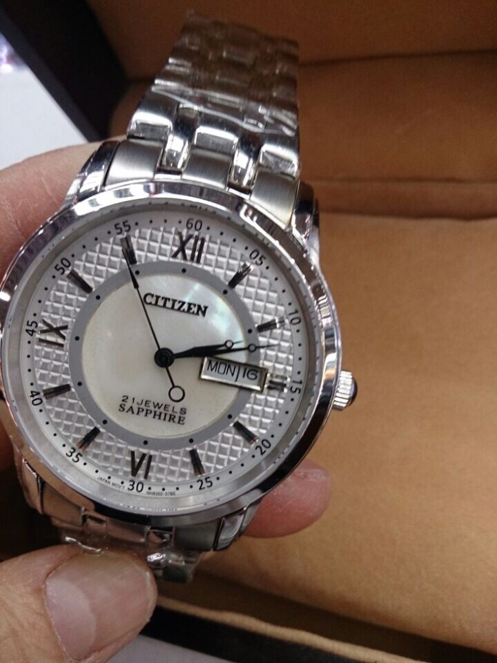 西鐵城citizen 精鋼錶帶雙曆自動機械錶男士手錶背透(白面)