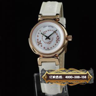 品牌:路易威登款式:女款 厚度:約9mm尺寸:錶盤直徑:31.0mm錶盤:珍珠母貝白錶盤錶帶:布配皮錶帶錶殼:玫瑰金錶殼防水:30米機芯:原裝瑞士石英機芯配件:原裝盒,說明書,質保卡,吊牌,香港發票鏡面:藍寶石水晶玻璃