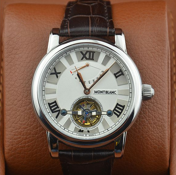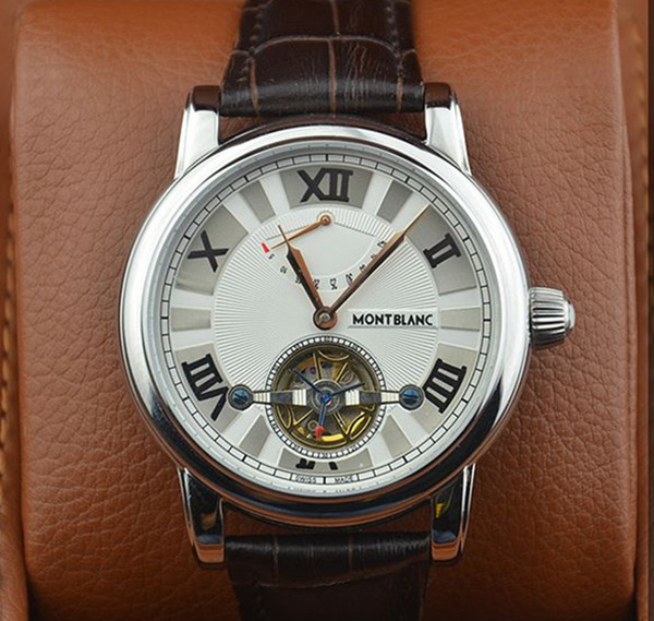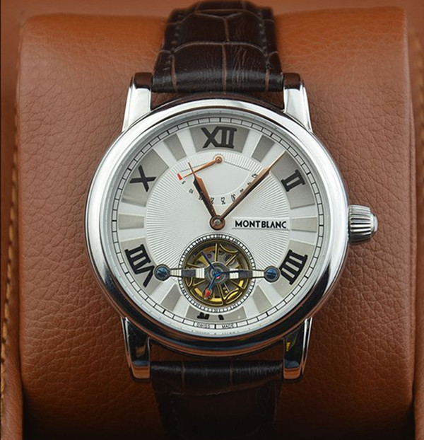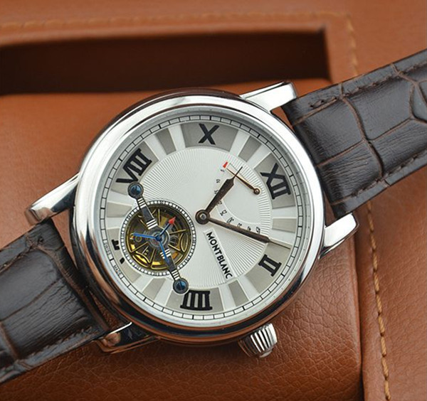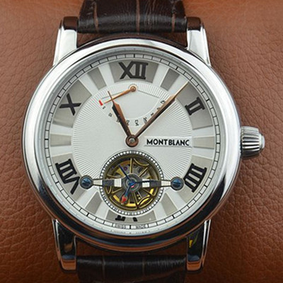 萬寶龍精鋼陀飛輪系列進口棕色小牛皮機械機芯男士腕錶 帶動能顯示