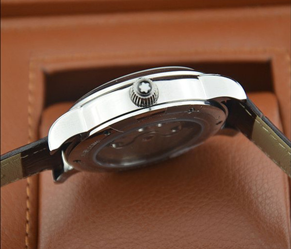 【機芯】:進口日本機械機芯 男款【材質】:高硬度耐磨鍍膜鏡面,全鋼錶殼,進口小牛皮【功能】:2針計時,日月星辰顯示,防磁,防震【尺寸】:直徑43.7mm,厚度12.6mm ,重量90g【標誌】:錶面、錶背、錶帶處有品牌標誌【防水】:生活防水【保修】:保修壹年【配件】:包裝盒,說明書,質保卡,吊牌,香港發票,手提袋———————————————————————————————————————————————————————————