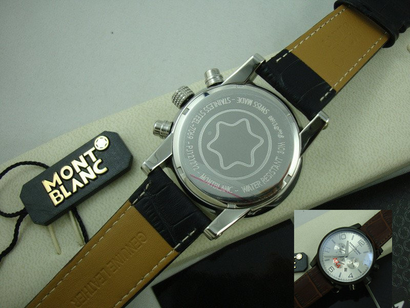 【品牌】:萬寶龍(MONTBLANC)【產地】:瑞士(香港組裝)【款式】:男士石英手錶(1:黑盤金圈棕皮帶,2:黑盤黑圈棕皮帶,3:黑盤白圈棕皮帶,4:黑盤黑圈黑皮帶,5:黑盤白圈黑皮帶)【機芯】:原裝進口石英機芯【錶面】:法國玻璃藍寶石鏡面,永不磨損。莫氏9級藍寶石錶面【材料】:進口法國小牛皮錶帶,永不掉色、永不生銹,高精度藍寶石玻璃永不劃損【尺寸】:直徑:43MM,厚度:13MM【標誌】:錶面、錶背、錶扣均有原廠標誌