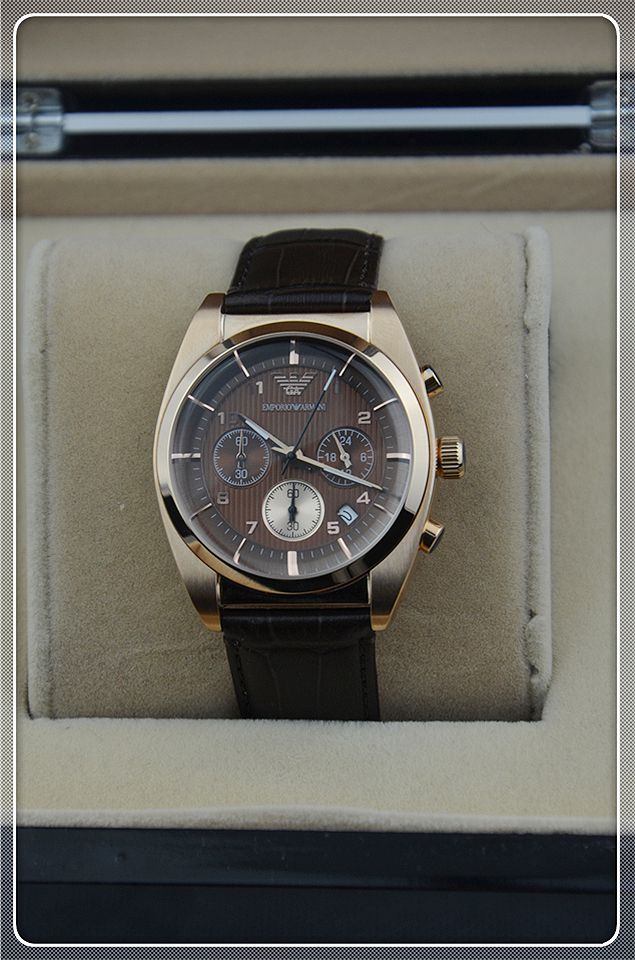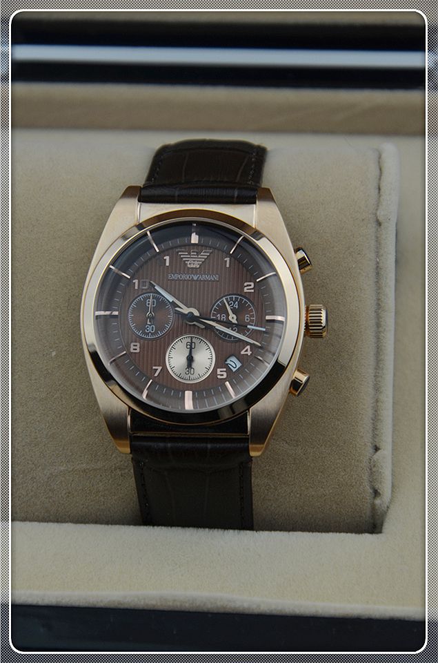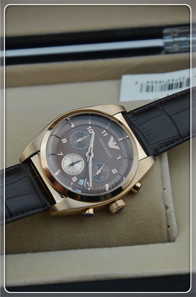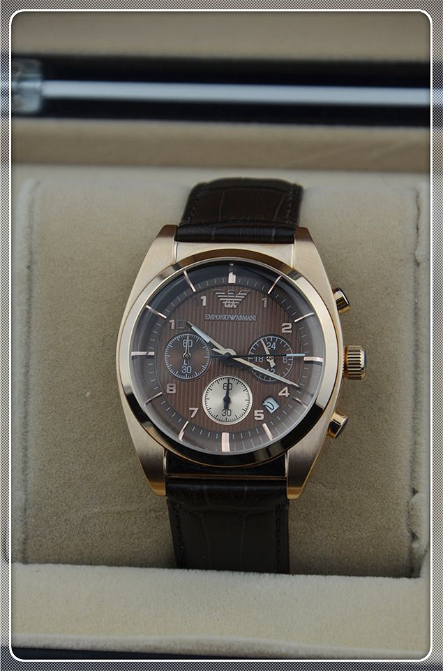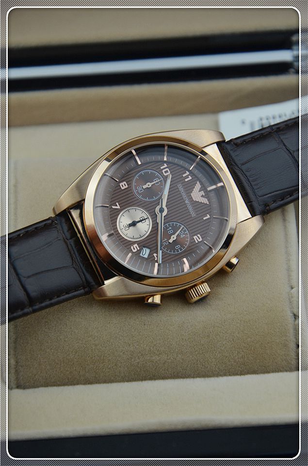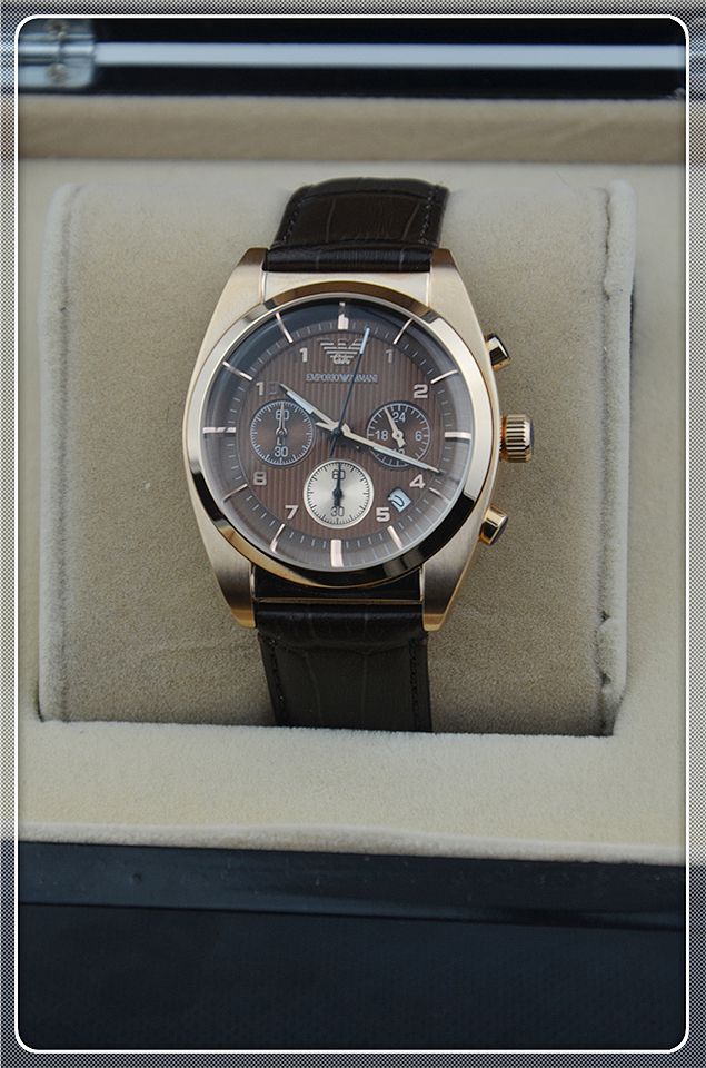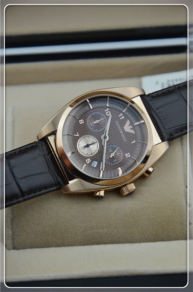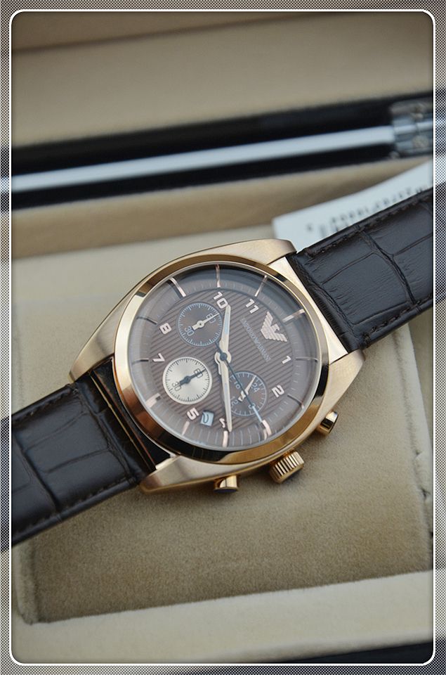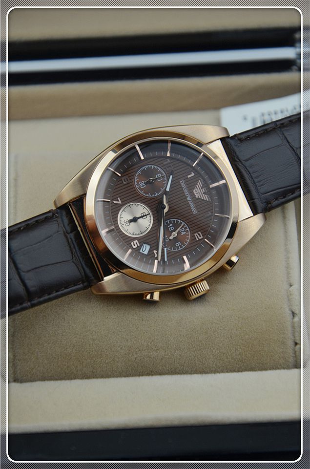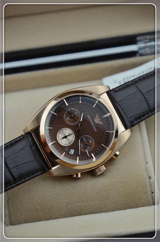 阿瑪尼三日歷棕色男士相約2014之男士腕錶