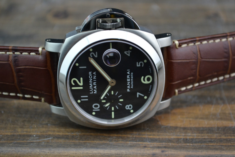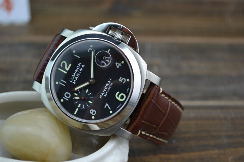 款式:男錶 機芯:自動機械錶芯 錶殼:不銹鋼 尺寸:44mm 厚度:14mm 錶冠:旋入式 錶底:不透底 錶鏡:藍寶石水晶玻璃 錶盤:黑色 錶帶:鱷魚皮 錶帶顏色:深棕色 錶扣:蝴蝶扣 防水:生活防水包裝:精美包裝盒、保修卡等 功能:日期顯示 夜光