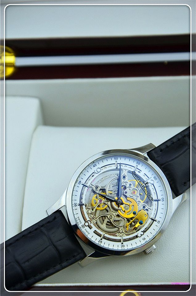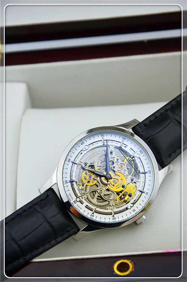 機芯:進口全自動機械機芯,背透材質:高硬度耐磨藍寶石鏡面,精鋼錶殼,銀色錶盤功能:3針計時尺寸:錶盤直徑:3.8CM,厚度:0.75CM,重量:50克標誌:錶面、錶背、錶帶處有標誌防水:生活防水(生活防水即:防濺潑、雨水等壹類遇水時間短,壹過性的遇水情況,遇水請及時甩幹或抹幹)