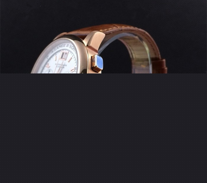 朗格 經典六針玫瑰金白面 多功能計時瑞士石英機男士腕錶 棕色真皮錶帶