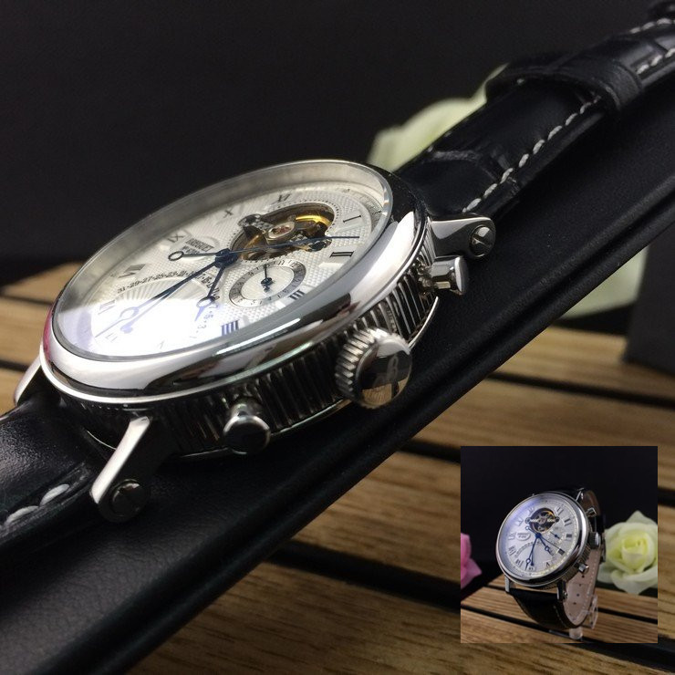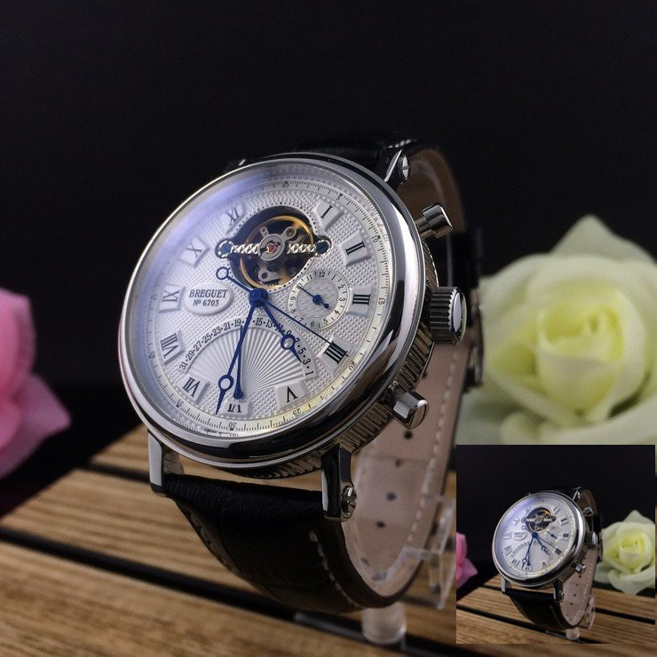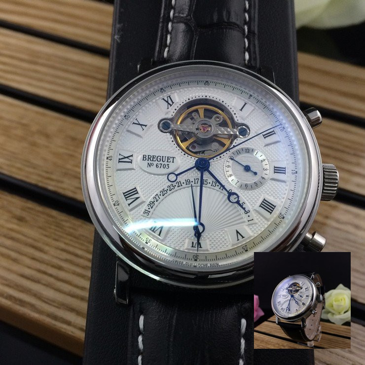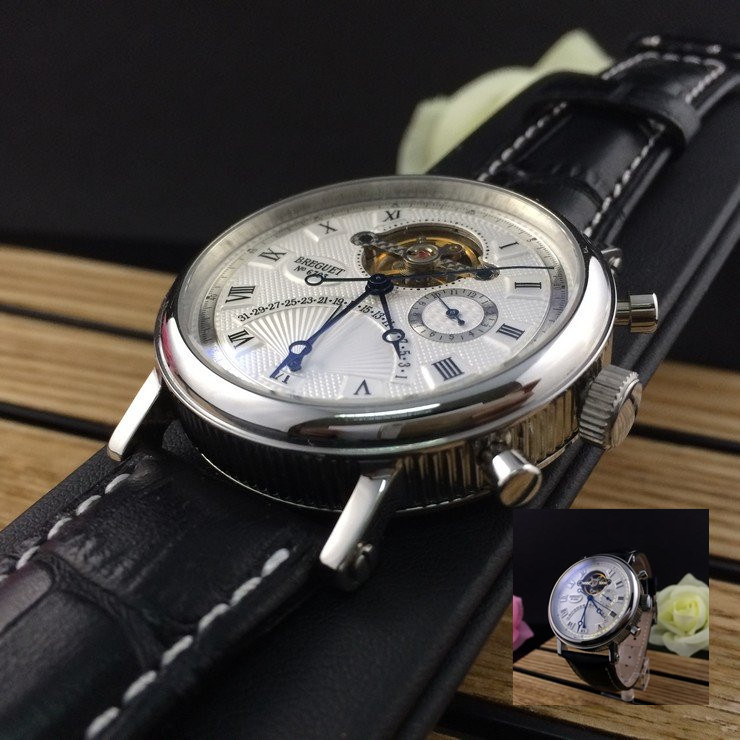 寶璣 精鋼白面陀飛輪 帶日曆男士 機械手錶