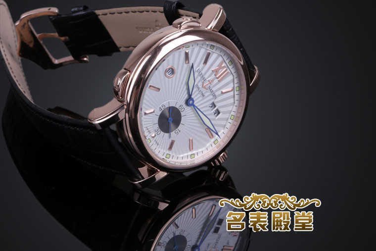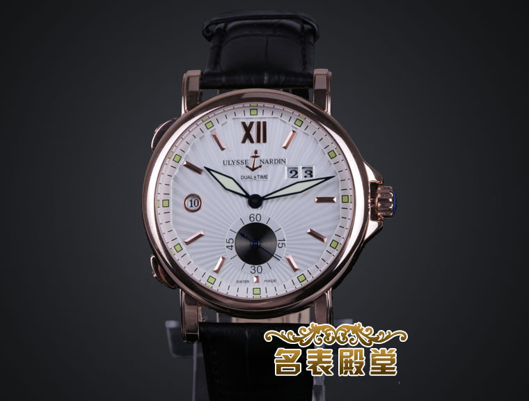 品牌:雅典系列:雙時區系列款式:男款型號:雅典246-55/31厚度:約11mm尺寸:不含錶耳42mm錶帶:真皮錶帶錶殼:玫瑰金錶殼防水:生活防水機芯:原裝瑞士ETA全自動機芯配件:原裝盒,說明書,質保卡,吊牌鏡面:藍寶石水晶鏡面功能:日歷(9點位置24小時,2點位置日歷)