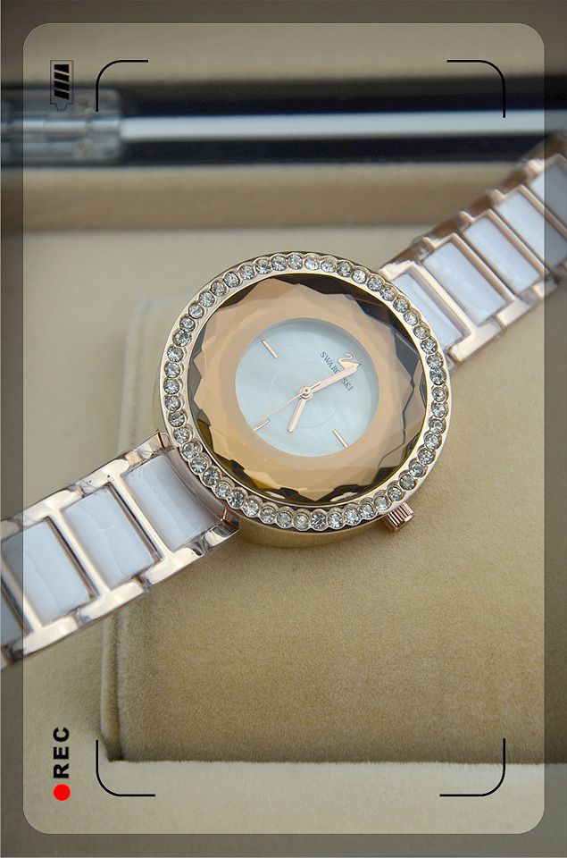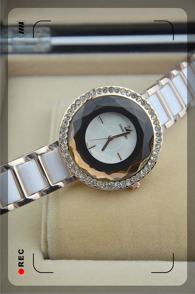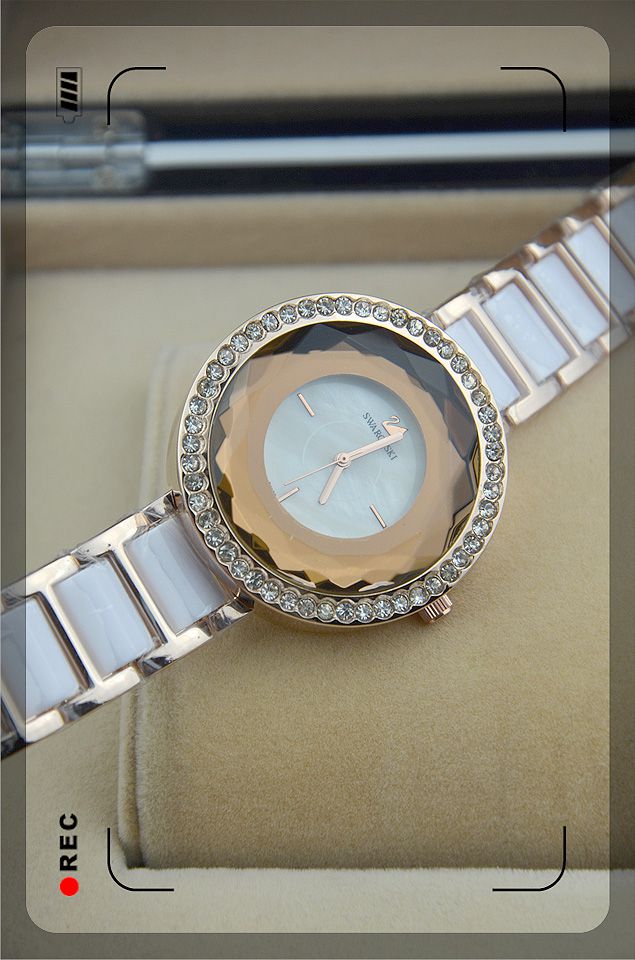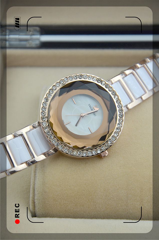施華洛世奇鑲鉆大錶盤女士腕錶