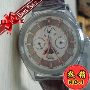 歐米茄日月星辰6針真皮錶帶石英機芯