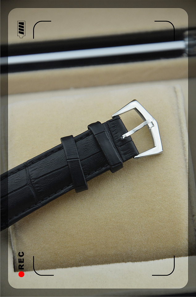 【材質】:高硬度耐磨藍寶石鏡面,全鋼錶殼,真皮錶帶
