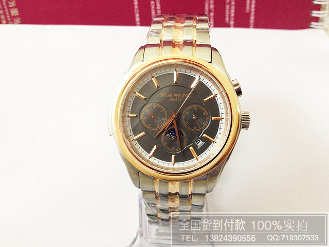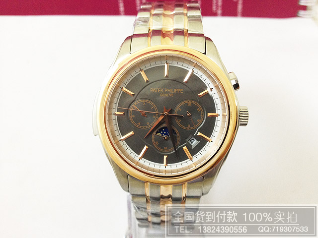 百達PP翡麗三眼日月星辰精鋼全自動機械機芯男錶