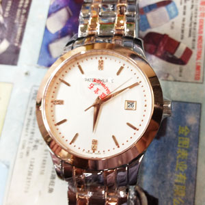 達翡麗條釘刻度機械錶男錶玫瑰金白麵