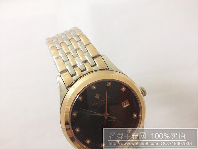 高仿百達翡麗鑽石刻度手錶,藍寶鏡面全自動機械機芯