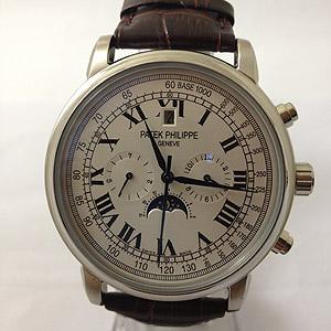 百達翡麗皮帶男錶精鋼殼高精密5針日曆晝夜指示自動機械錶男錶