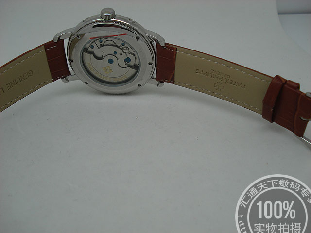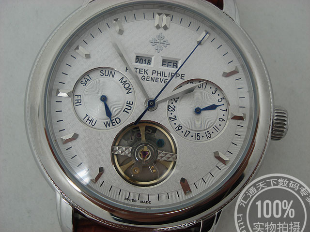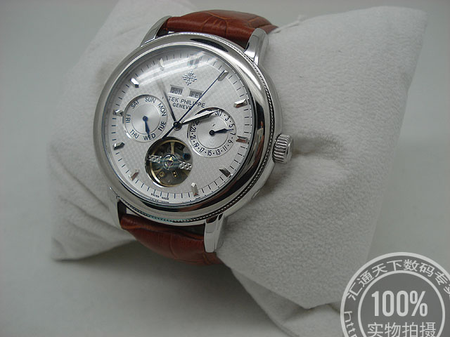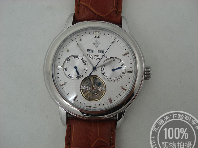 百達翡麗 銀色錶盤條釘刻度背透男錶陀飛輪