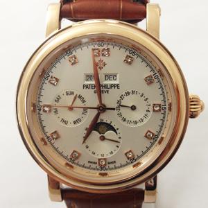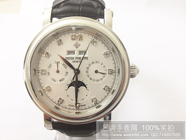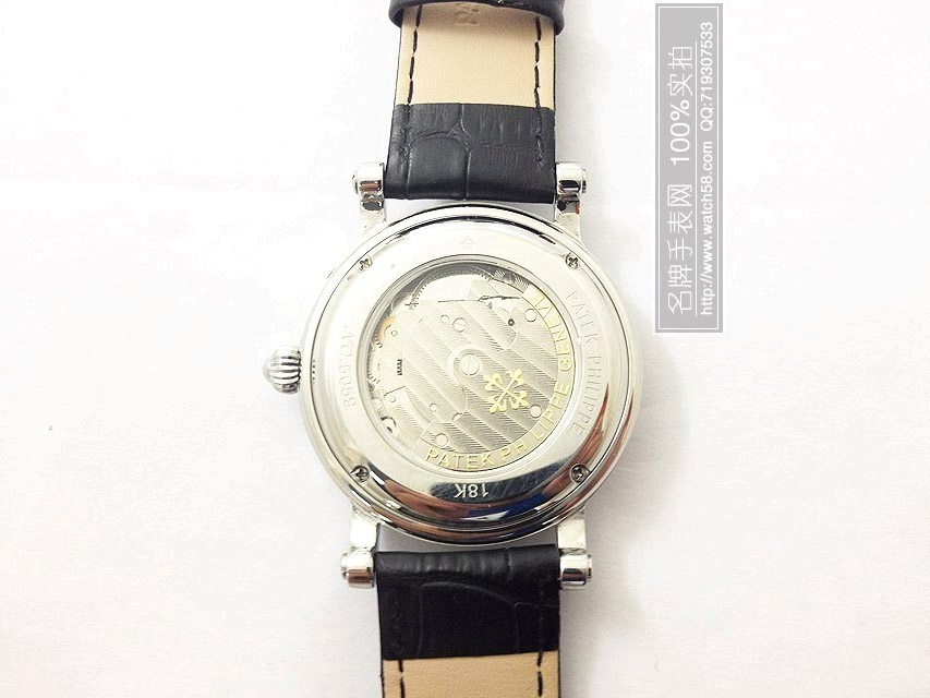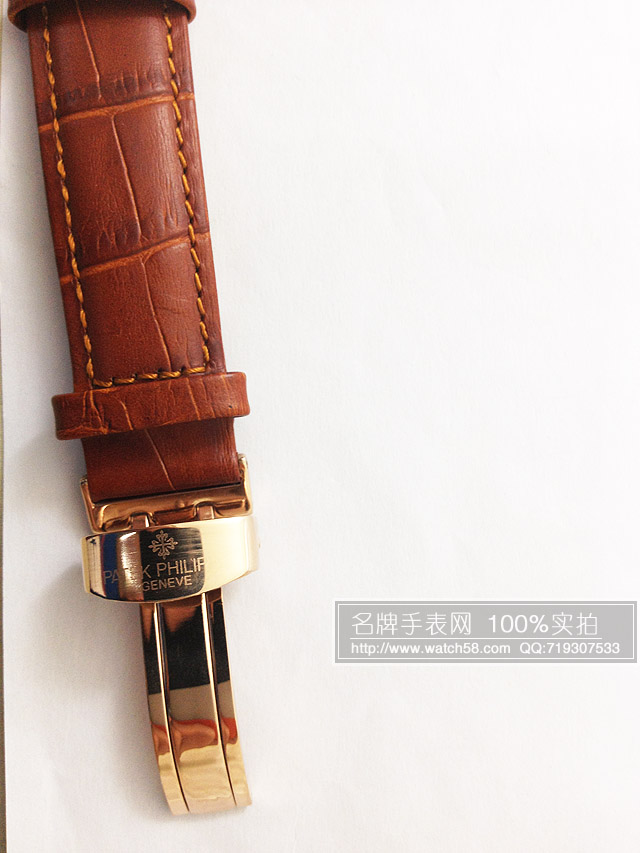 【標誌】錶面、旋鈕、錶背、錶帶均有Patek Philippe 標誌。