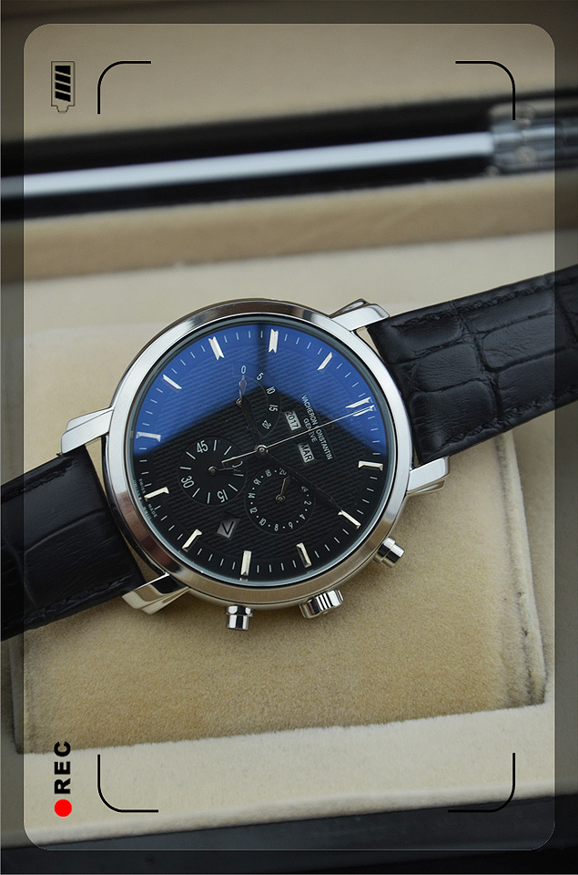 【材質】:高硬度耐磨藍寶石鏡面,全鋼錶殼,真皮錶帶