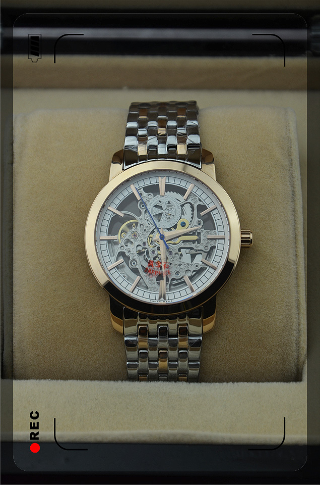 【材質】:高硬度耐磨藍寶石鏡面,全鋼錶殼,金色錶圈,精鋼間金全散珠錶帶,蝴蝶雙按扣,白色錶盤,金色錶針,金色條釘刻度