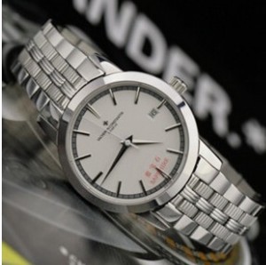江詩丹頓全精鋼白底日曆自動機械男錶條釘面機械男錶