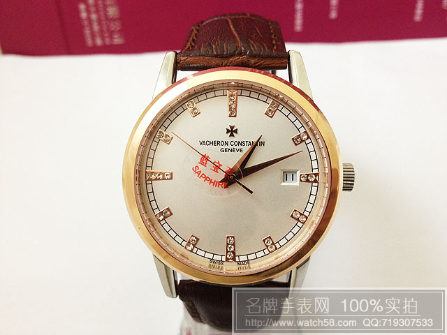 【材料】:18K玫瑰金錶殼,鑽石刻度,義大利小牛皮錶帶,高精度藍寶石玻璃永不劃損