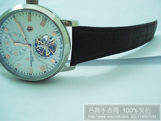[錶盤] 白色鏤空錶盤,玫瑰金指標及刻度,江詩丹頓LOGO轉針