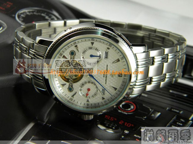 【腕錶功能】生活防水、防震、防磁、日曆、月份,年號,陀飛輪顯示,透底後蓋。