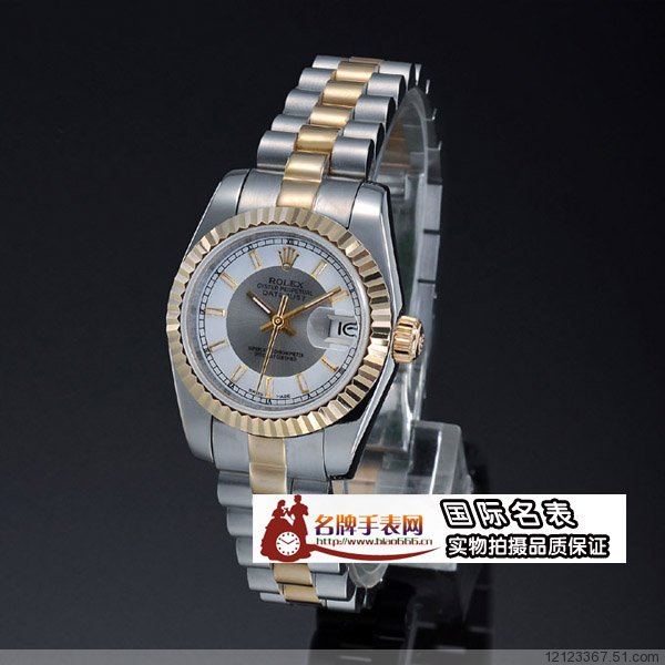 勞力士日誌型 原裝進口機芯18K包金雙色錶盤女錶R123G