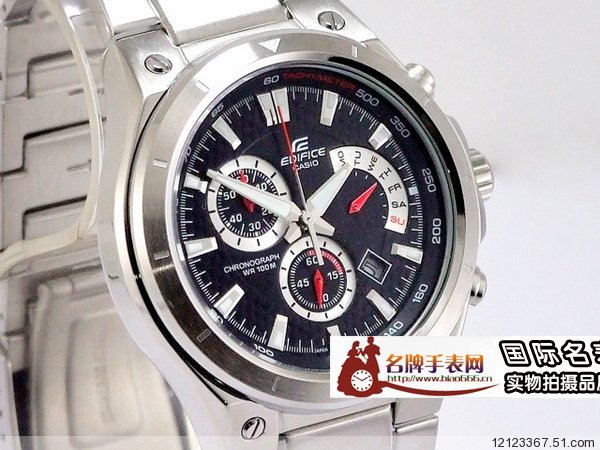 產品簡介:CASIO EDIFICE系列【速度&智慧】的化身-娛樂與專業的結合 三眼計時碼錶賽車錶 多功能指針型手錶 男錶 →本款結合了碼錶指標系列 & 指標系列的特色,堪稱EDIFICE品牌哲學"速度 & 智慧"的化身。擁有會倒退的指標,在星期顯示的部份清晰易讀。面板邊緣有編織紋路設計.