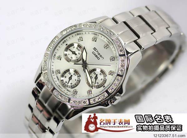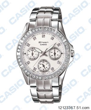 卡西歐名伶魅力閃耀迷幻水鑽三眼女錶SHN-3013D-7A