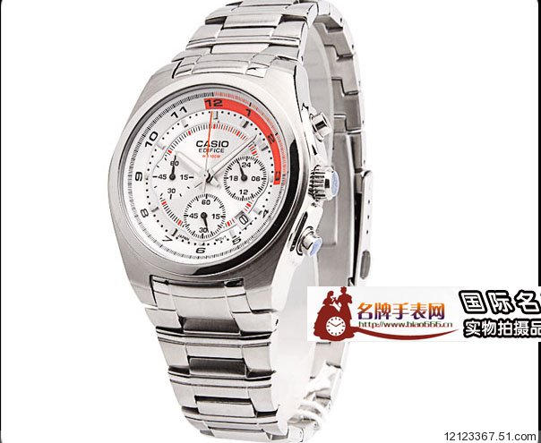 卡西歐Casio男款EDIFICE系列銀/白/橙紅色石英錶EF-513D-7AVDF