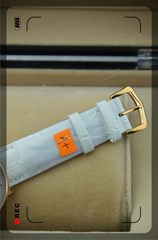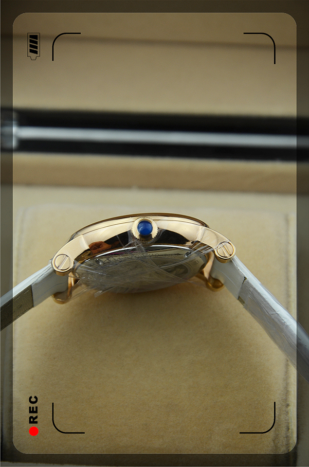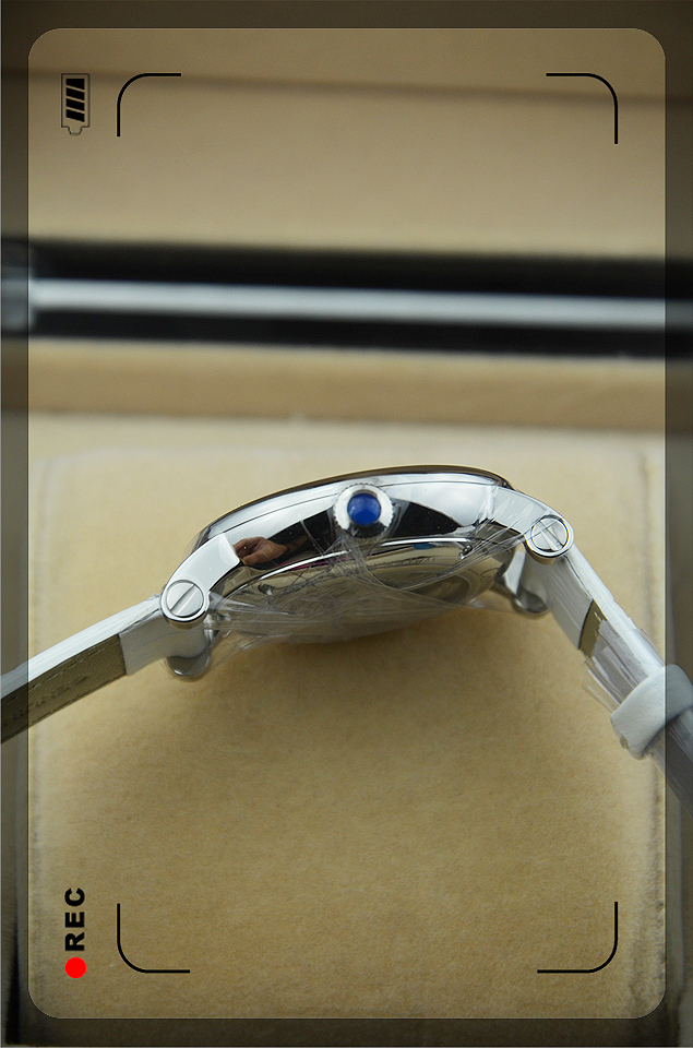 【材質】:高硬度耐磨藍寶石鏡面,全鋼錶殼,金/銀色錶圈,真皮錶帶,卡針扣,白色錶盤,藍色錶針,黑色羅馬刻度