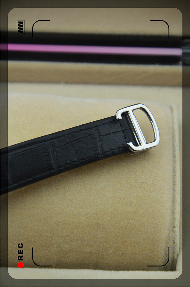 【材質】:高硬度耐磨藍寶石鏡面,全鋼錶殼,銀色錶圈,真皮錶帶,原裝按扣,銀色錶盤,藍色錶針,數位刻度
