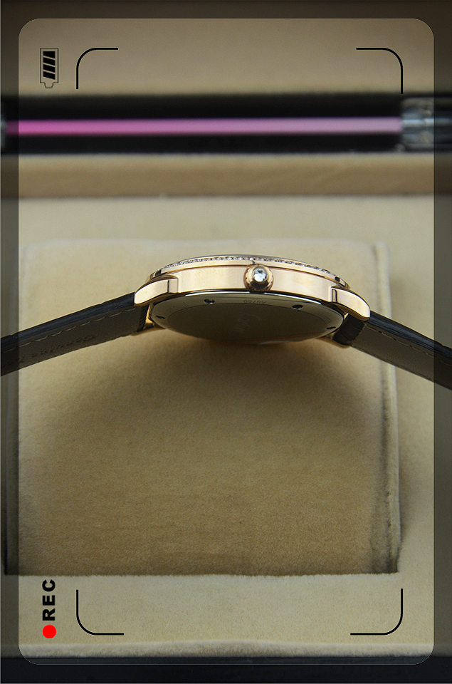 【材質】:高硬度耐磨藍寶石鏡面,全鋼錶殼,金色錶圈,真皮錶帶,原裝扣,黑/白色錶盤,黑色錶針,黑色羅馬刻度