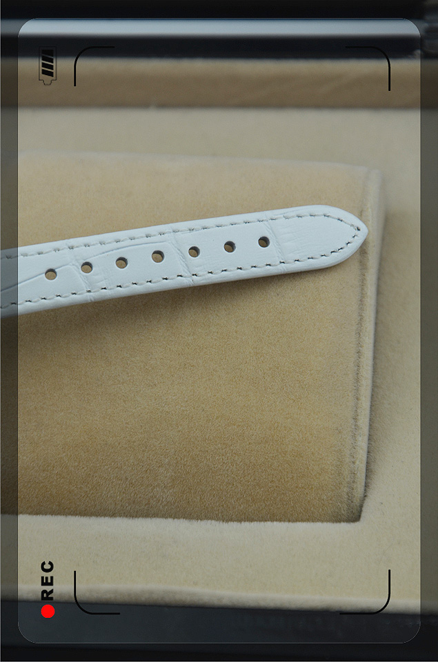 材質:高硬度耐磨藍寶石鏡面,全鋼錶殼,銀色錶圈,真皮錶帶,針扣,貝殼面,黑色錶針