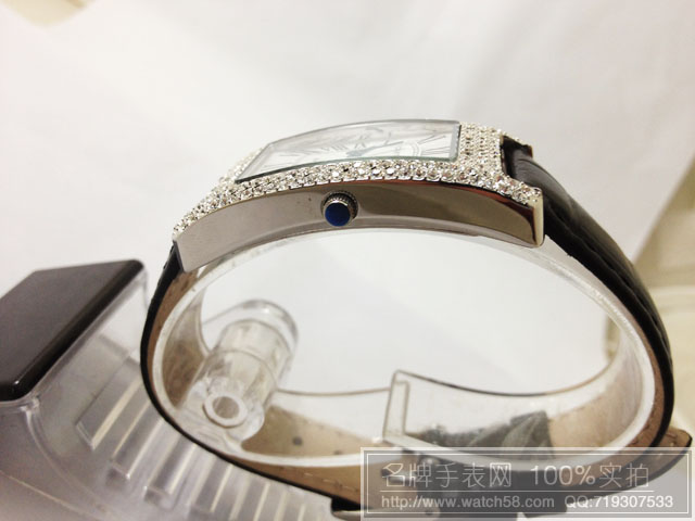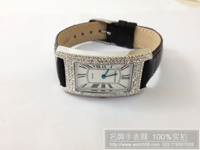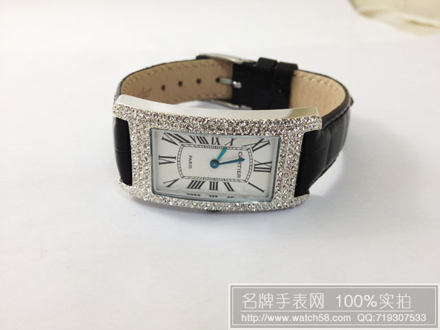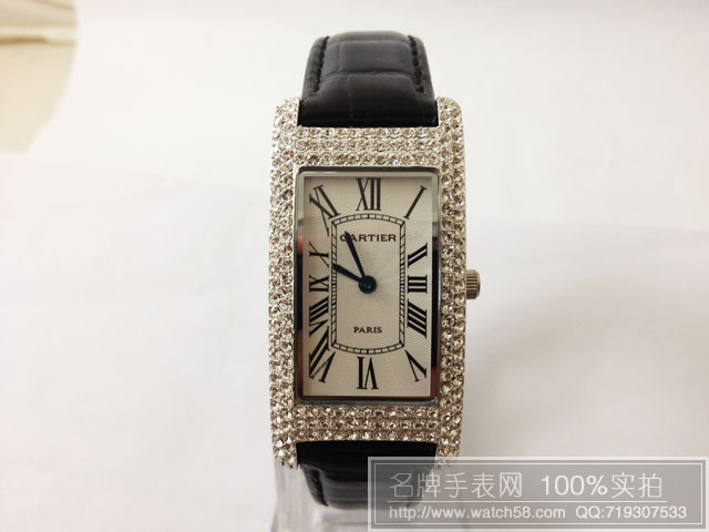 卡地亞鑲鑽女生手錶,方形皮帶石英錶