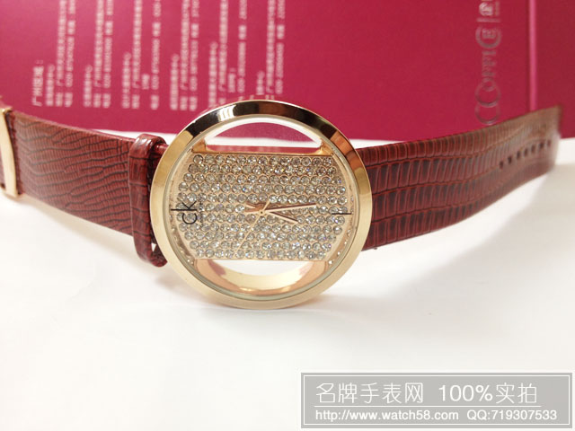 CK女士手錶鑲鑽錶盤,玫瑰金錶框,真皮錶帶LV089493