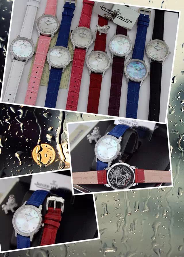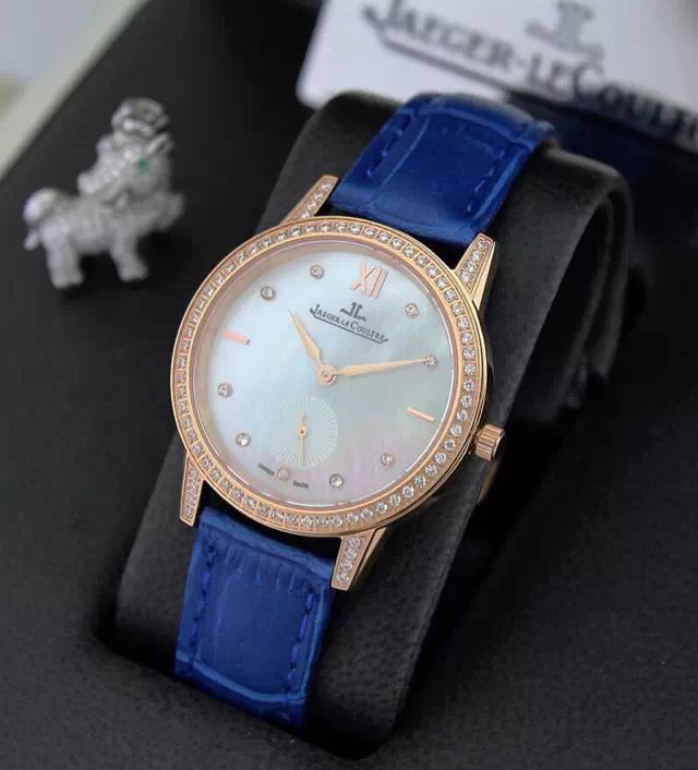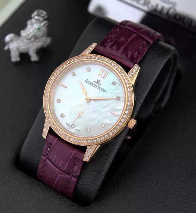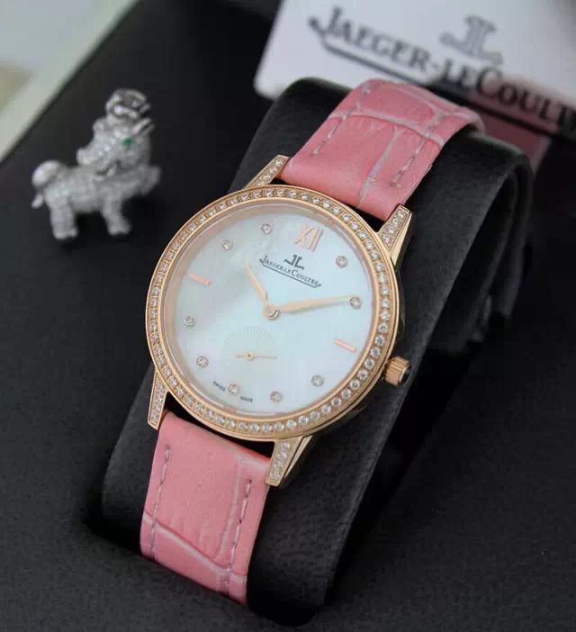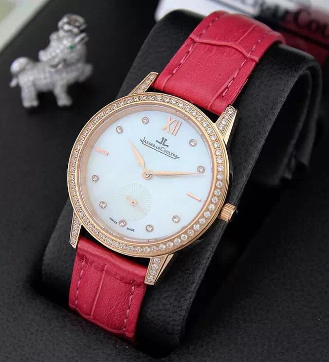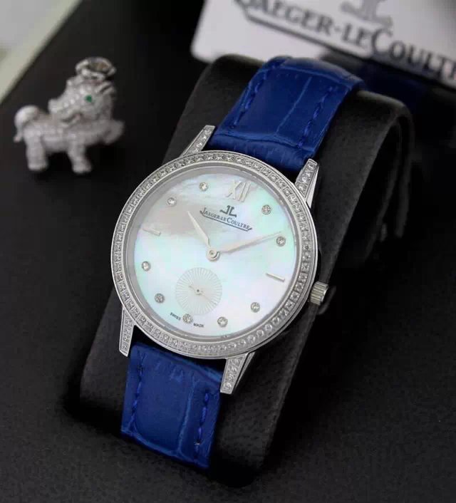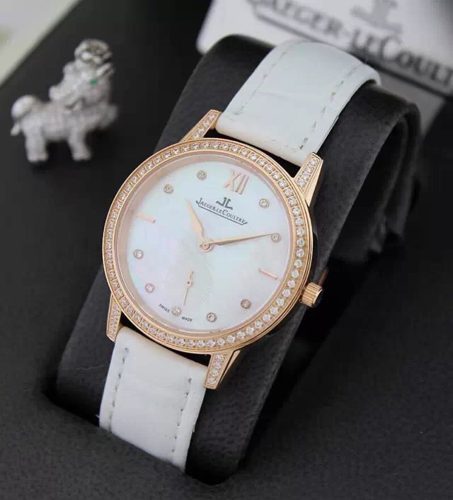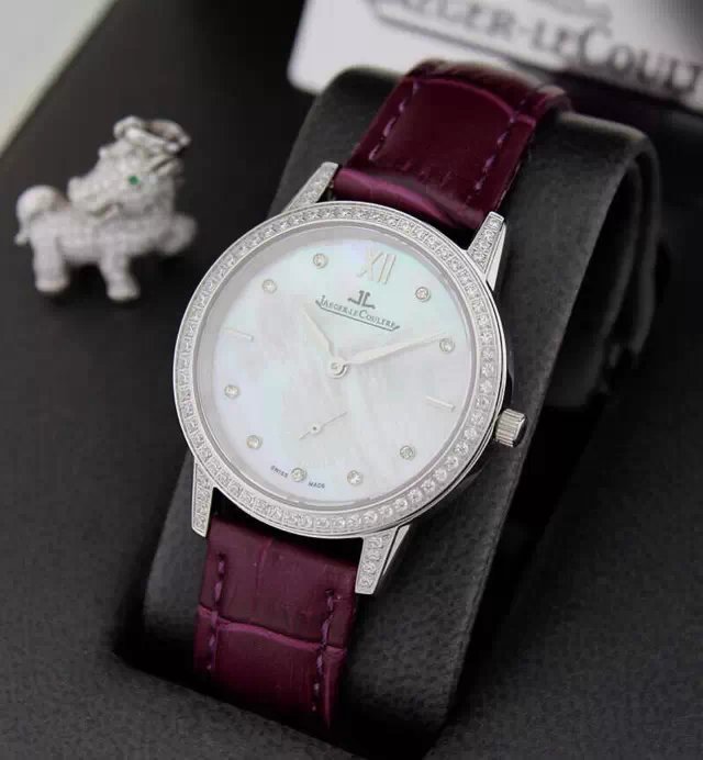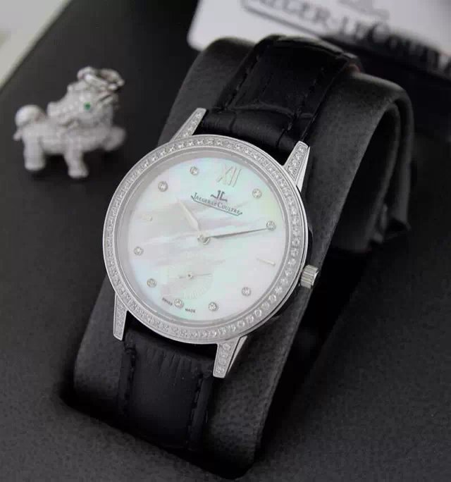 積家女士貝母面鑲鑽皮帶瑞士石英女士腕錶