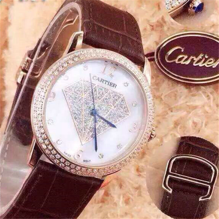 卡地亞Cartier腕錶瑞士石英機芯白色鑲鑽錶盤意大利進口小牛皮36mmX10mm