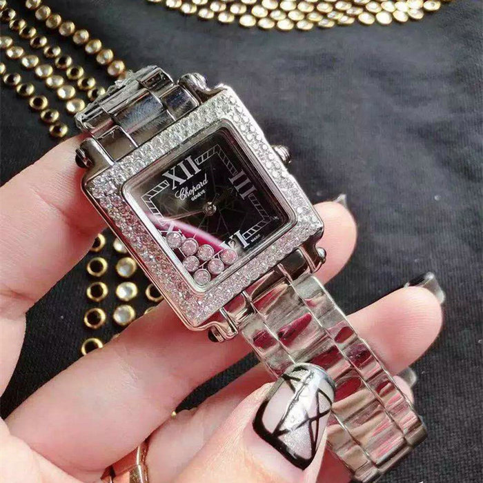 蕭邦Chopard方形走珠系列水鑽鑲嵌精鋼錶殼