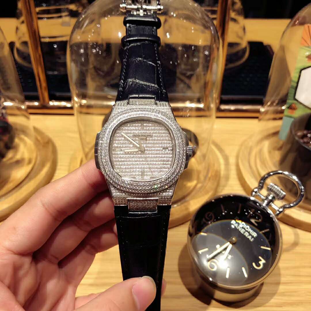 百達翡麗 鸚鵡螺滿鑽5719/1G-001腕錶 搭載進口全自動機械機芯
