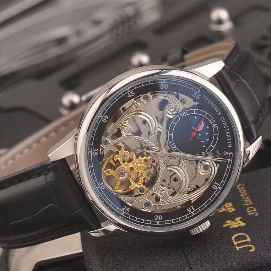 江詩丹頓陀飛輪鏤空男士休閒機械腕錶真牛皮錶帶針扣搭載全自動機械機芯尺寸40mm厚12mm