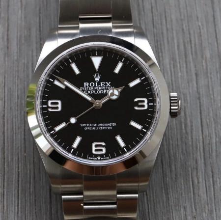 工作臺上,十幾只不同年代的勞力士探險家型腕錶被整齊排列,從最早的Ref. 6350到最新款的探險家型224270。老陳手中拿著的,正是一只仿製的224270——2023年推出的40毫米新款探險家,向初代致敬的現代版本。